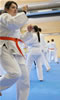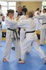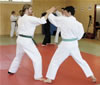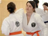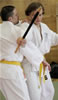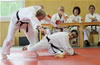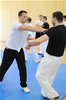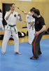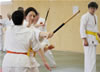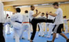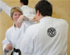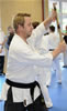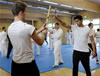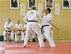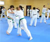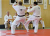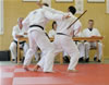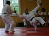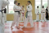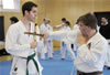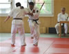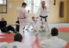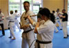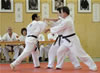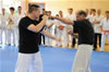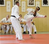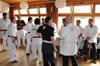 | Zum Lehrgangswochenende selbst wurde auch der untere Raum genutzt. Im Spiegelsaal wurde eine weitere Mattenfläche von ca. 150 m2 aufgebaut. Während im Obergeschoss Selbstverteidigung verschiedenster Ausprägungen gelehrt wurde, gab es im Untergeschoss für die Teilnehmer Shaolin-Tempelboxen und Stockkampf. Die Lehrer, alle Großmeister in ihrer Disziplin, hatten in den 4 Übungseinheiten anspruchsvolle 80 Teilnehmer zu betreuen. Am Ende waren alle sehr zufrieden. Gastgeber Thomas Gerold bedankte sich bei Hannelore und Lothar Sieber (Jiujitsu-Karate), Andreas Woithon (Shaolin Tempelboxen), Harald Weitmann (Okinawa Karate und Arnis) und Gerhard Jung (Jiu-Jitsu-Karate) für ihr Engagement und bei den Teilnehmern für ihr reges Interesse und ihre Mitarbeit. |