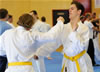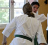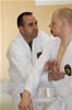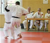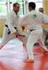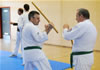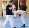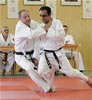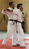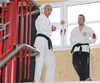 | Etwas ganz besonderes rundete den ersten Lehrgangstag ab. Es durften sich 2 Prüflinge für ihren nächst höheren Meistergrad dem Prüfungskomitee, bestehend aus 5 Großmeistern, vorstellen. Ecevit Caliskan aus Augsburg bestand die Prüfung zum 3. Dan (Meistergrad) Jiu-Jitsu. Davoud Sharifi aus Weilheim bestand die Prüfung zum 4. Dan Jiu-Jitsu. |